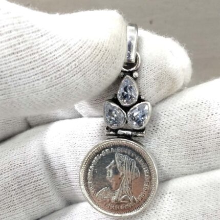 Oxidized 925 Sterling Silver Coin & Stone Studded Pendant | Silver Pendant | Gift for Girl Friend | White Stone Studded