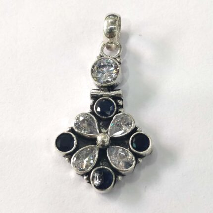 Oxidized 925 Sterling Silver Stone Studded Pendant | Silver Pendant | Gift for Girl Friend | Blue & White Stone Studded