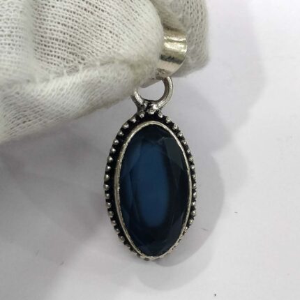 Oxidized 925 Sterling Silver Blue Citrine Stone Studded Pendant | Silver Pendant | Gift for Girl Friend | Blue Citrine Studded