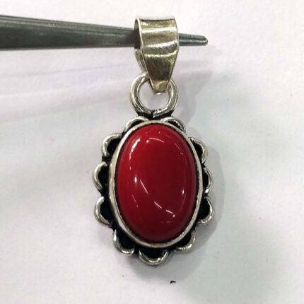 Oxidized 925 Sterling Silver Red Stone Studded Pendant | Silver Pendant | Gift for Girl Friend | Red Stone Studded