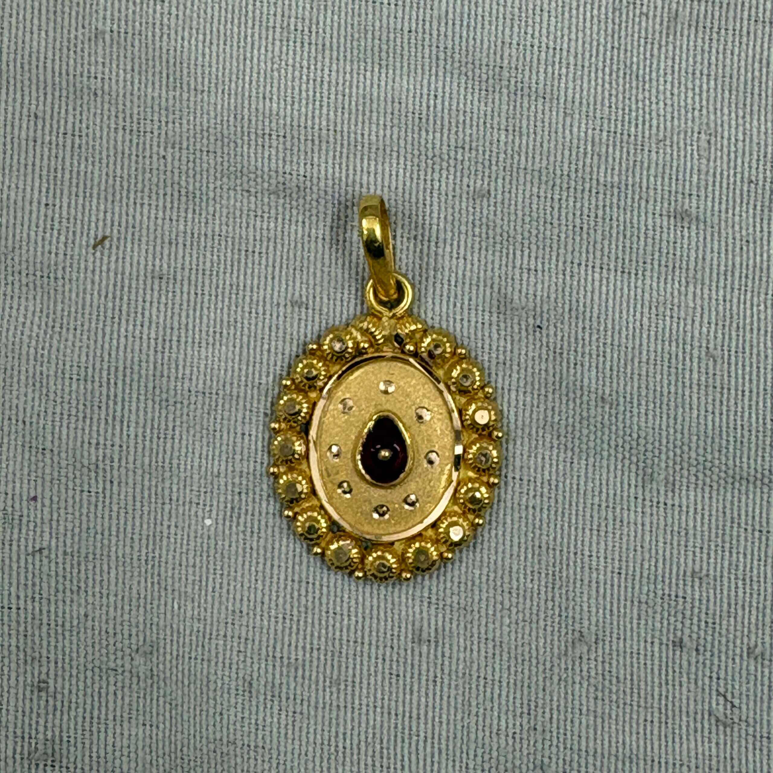 The centerpiece features a red enamel soul symbol, representing inner strength and divine connection, surrounded by intricate gold artistry that adds both elegance and depth. Designed to inspire positivity, peace, and spiritual upliftment, this pendant is a perfect companion for daily wear, meditation, or as a meaningful gift for loved ones.