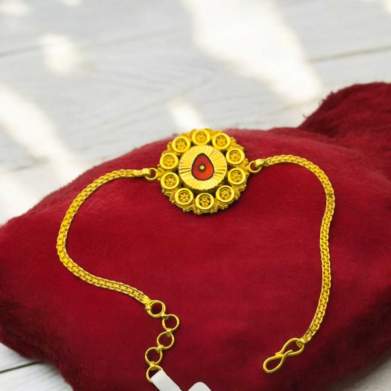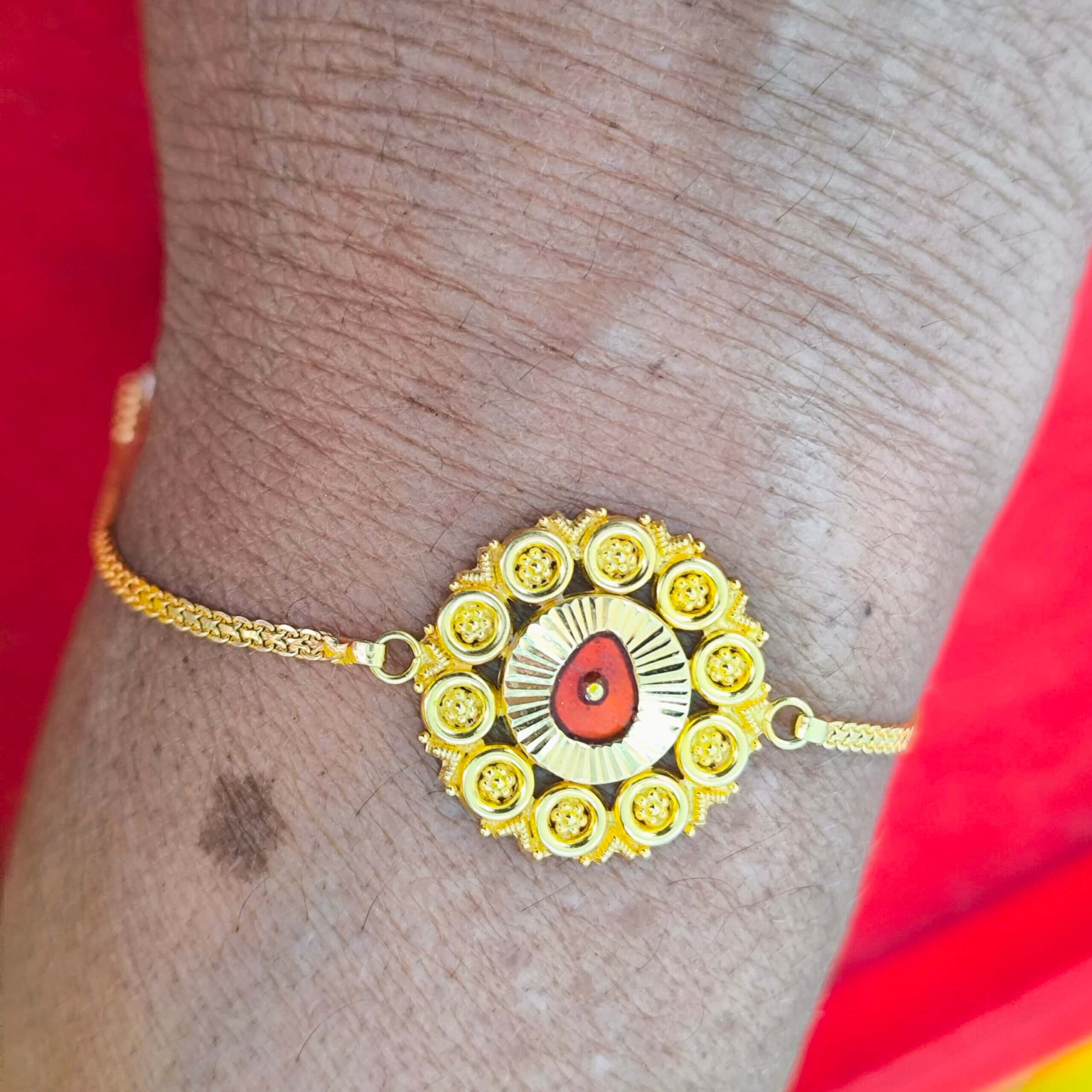 Brahma Kumaris 22K Hallmarked Gold Rakhi Bracelet | 3.520gm | Adjustable 16-18cm | Free Shipping in India-SSJGB10