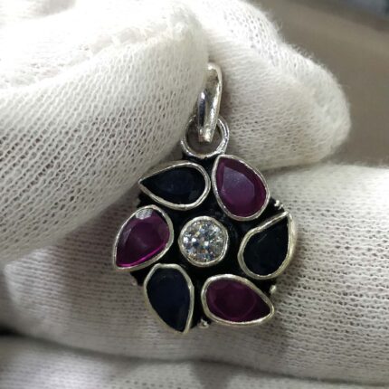 Oxidized 925 Sterling Silver Green Onex Studded Pendant | Silver Pendant | Gift for Girl Friend | Green Onex Stone Studded